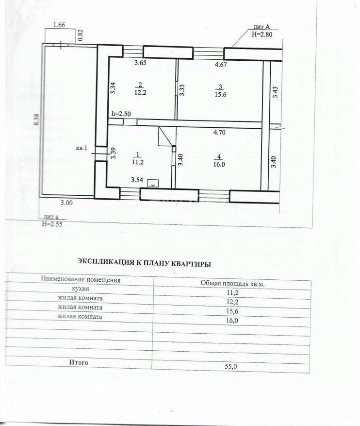 Общая площадь: 55 м²
