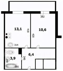 Квартира имеет две комнаты - кухня-гостиная