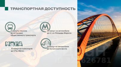 - Транспортная доступность: остановки общественного транспорта в шаговой доступности, до станции метро Площадь Маркса — 25 минут на транспорте.