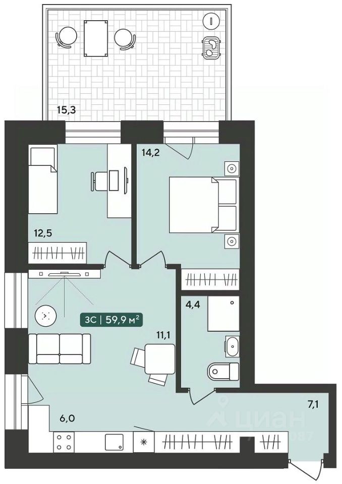 Общая площадь59,9 м²