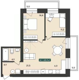 Общая площадь65,9 м²