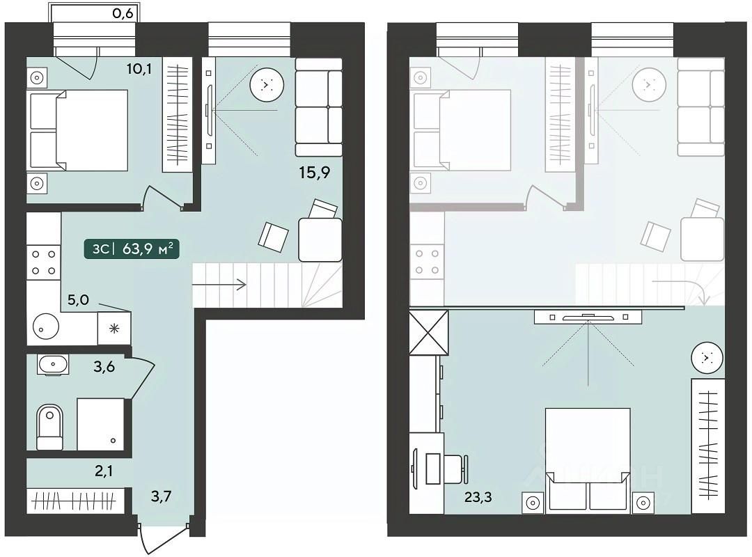 63,9 м²