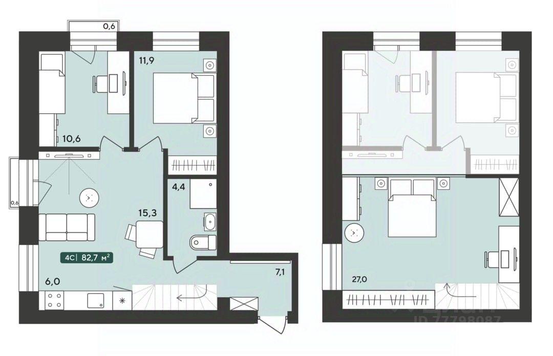 Общая площадь82,7 м²