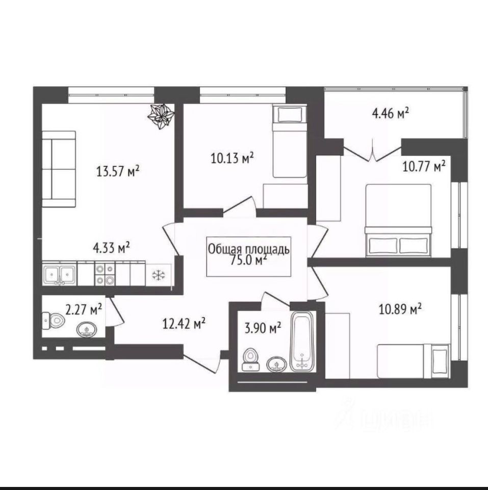 75 м²