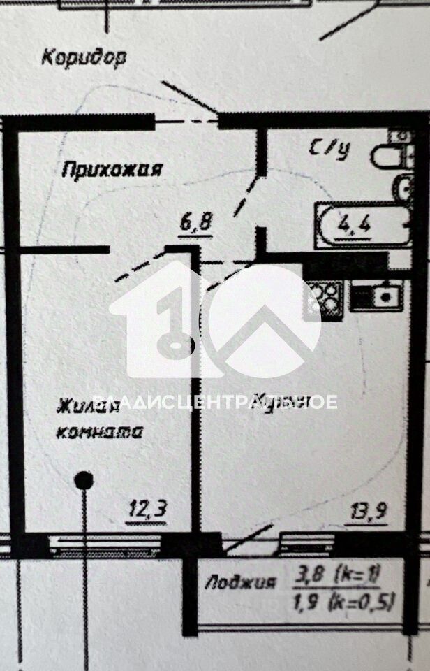Общая площадь квартиры составляет 41,2 кв. м, из них жилая площадь — 12,3 кв. м, площадь кухни — 13,9 кв. м. Квартира имеет удобную планировку с изолированными комнатами и лоджией. Высота потолков 2,7 м создаёт ощущение простора.