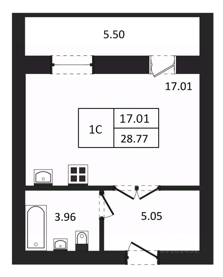 Общая площадь28,77 м²