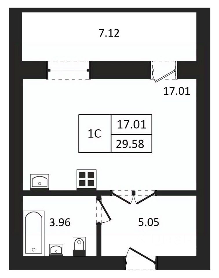 Общая площадь29,58 м²