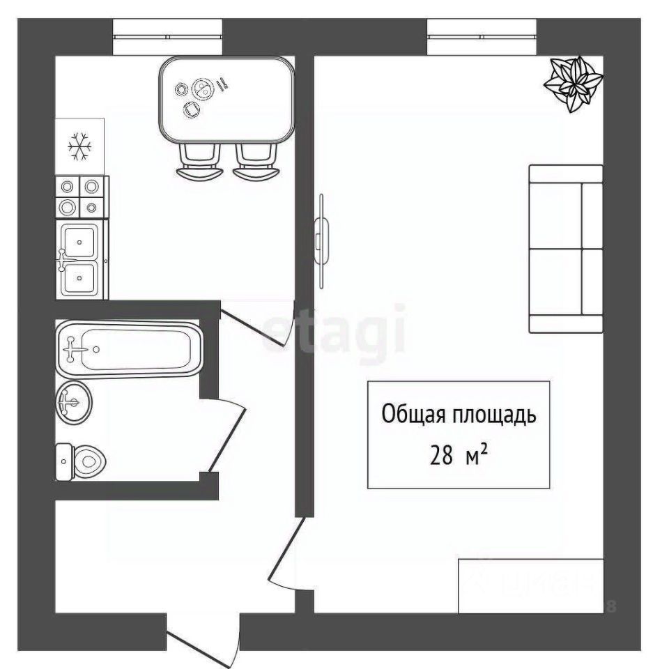 При продаже новому владельцу останется встроенная мебель (шкафы, кухонный гарнитур с варочной панелью, стол), диван, вся сантехника, а также стиральная машина)