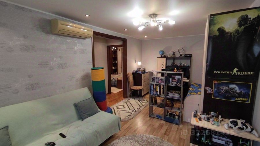 Спальня: 2-сп кровать, шкаф-купе, 2 шкафа бельевых, 4 мягк стула, тумбочка, комп кресло, туалет столик с зеркалом, турник, гардины, тюль;