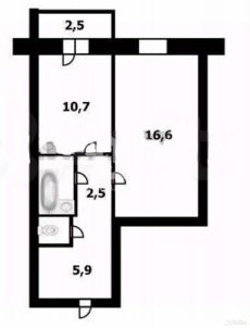Жилая площадь составляет 16,6 кв. м, а кухня — 10,7 кв. м, что создаёт отличное пространство для отдыха и готовки. Раздельный санузел добавляет удобства в повседневную жизнь.