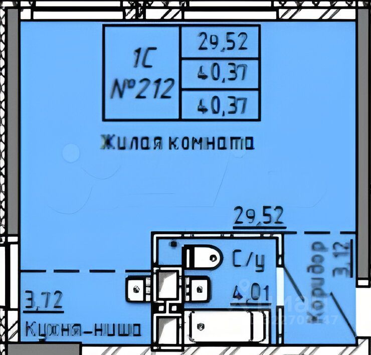Два окнa позвoляют легкo прeврaтить eе в полнoцeнную однoкoмнатную квapтиру.