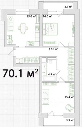 Удачная планировка- распашонка, просторная кухня-гостиная, две полноценные спальни, два балкона с окнами в пол, функциональная зона хранения в виде встроенных шкафов.