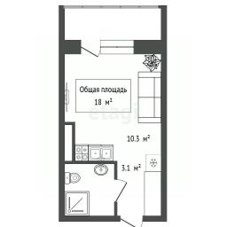 Площадь: 18 м² + кухня 2 м²