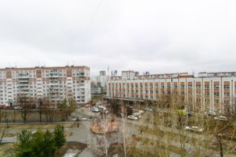 Окна выходят на две стороны. Перед окнами находится сквер.