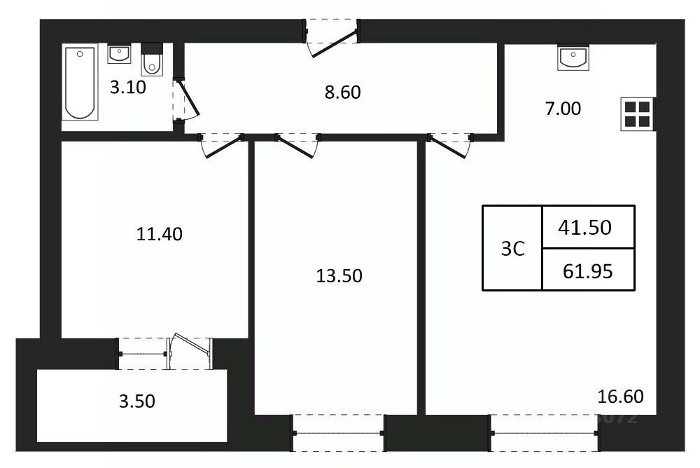 Общая площадь61,95 м²