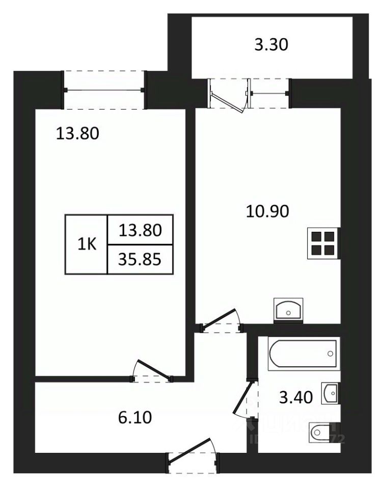 Общая площадь35,85 м²
