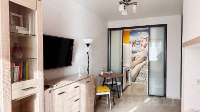 Особое внимание в этой квартире можно уделить спальному месту, которое по сути является отдельной комнатой, расположенной над диваном. Антресольное спальное место не только экономит пространство, но и добавляет дополнительное место хранения. Для покупателей с ребенком будет огромным преимуществом! В комнате расположен выход на балкон(естественный свет, свежий воздух) есть люстра, кронштейн для телевизора.