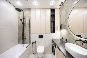 Ванная комната полностью укомплектована: