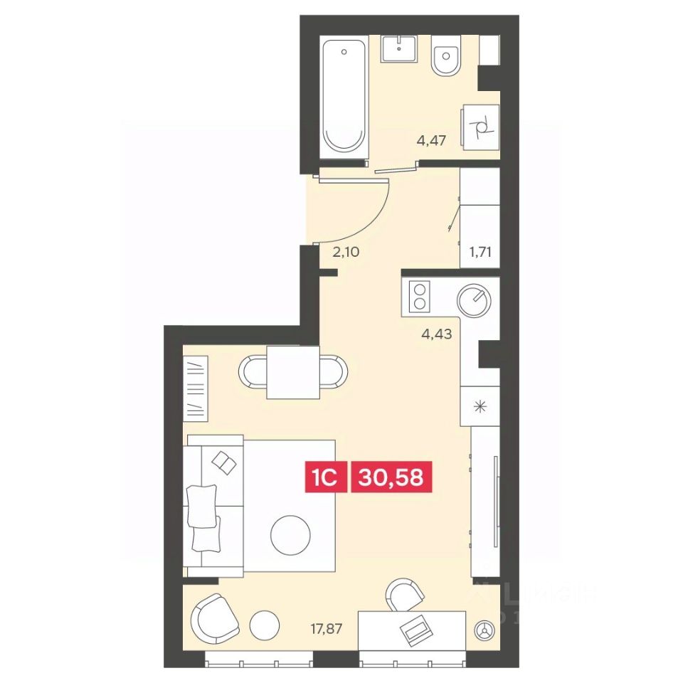 Общая площадь30,58 м²