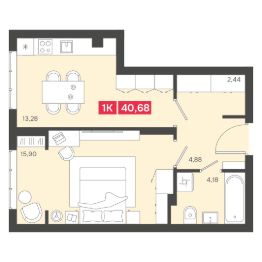 Общая площадь40,68 м²