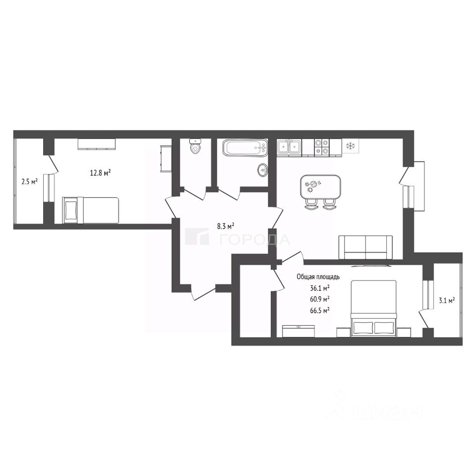 Квартира расположена на высоком первом этаже четырёхэтажного кирпичного дома, построенного в 2020 году. Высота потолков — 2,7 метра, что создаёт ощущение простора. Общая площадь квартиры без коэффициента площади лоджий составляет 60,9 кв. м, из которых 36,1 кв. м — жилая площадь, а 12,8 кв. м — просторная кухня. Две лоджии - 2,5 кв.м и 3,1 кв.м.