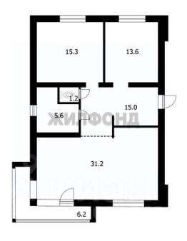 2 изолированных спальни 15,3 м2 и 13,6 м2