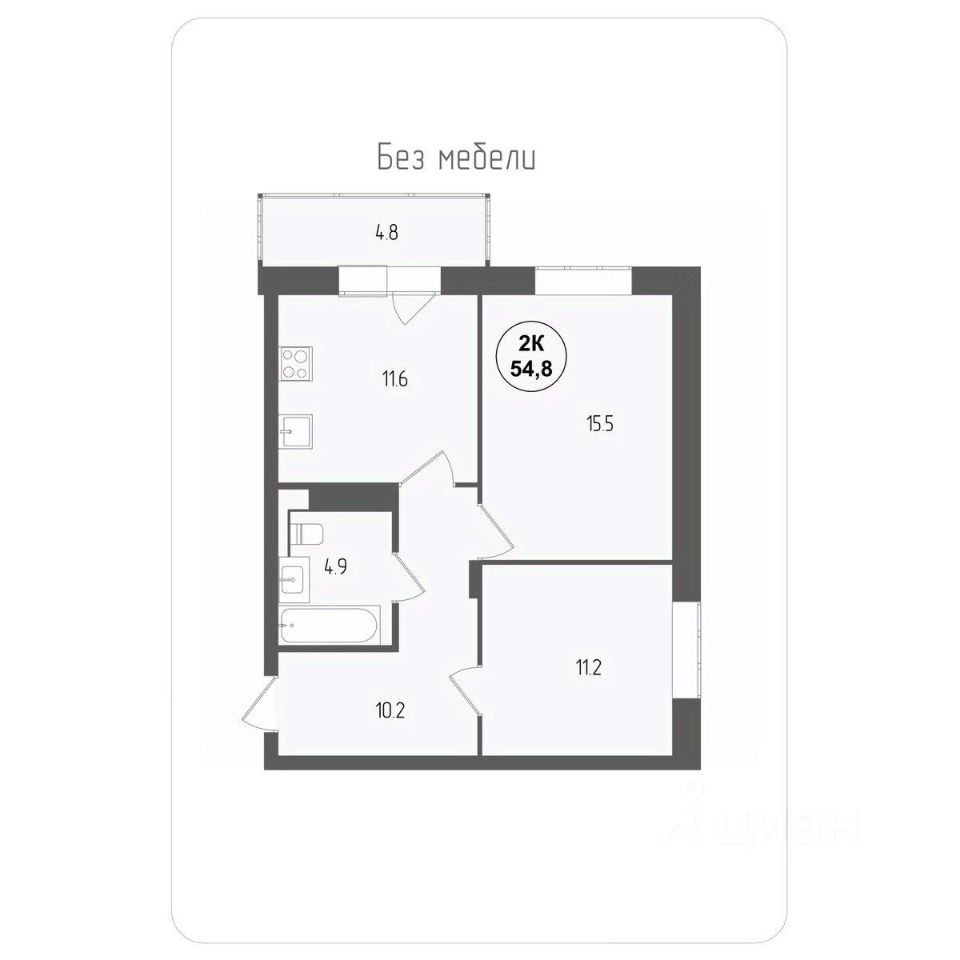 Общая площадь54,8 м²