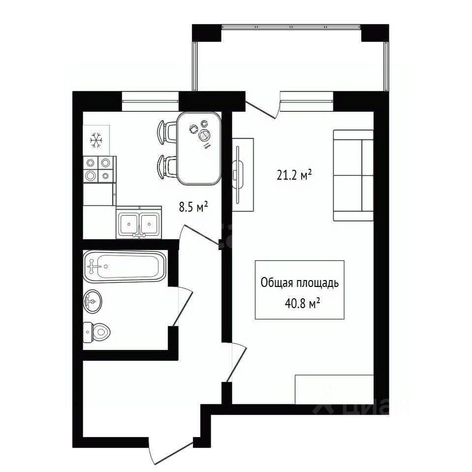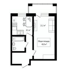 Светлая, просторная комната 21,2 м² с удобным зонированием.