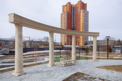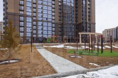 Двор закрытый, охраняемый, свободный от машин двор отличается оригинальным дизайном и современным оснащением . Внутри двора размещаются детские и спортивная площадки, зона отдыха, зеленые насаждения: газоны, кустарники и деревья. Бесплатная наземная парковка для жителей вынесена за периметр двора. Для комфортного и безопасного передвижения по территории ЖК застройщик выполнил широкие тротуары и пандусы. На территории ЖК ведется видеонаблюдение.
