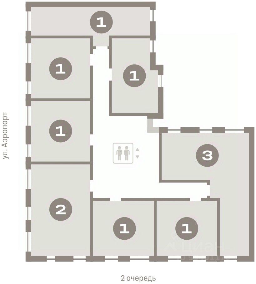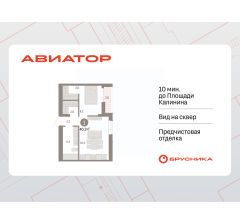 Квартира с кухней-гостиной и одной спальней в квартале Авиатор. Особенности планировки: гардеробная, вид во двор, лоджия, предчистовая отделка.