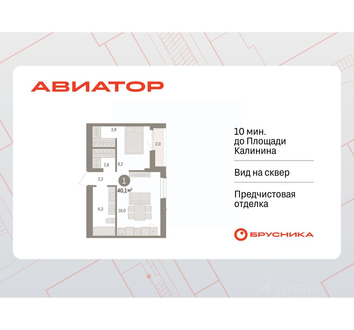 Просторная 1-комн. квартира с предчистовой отделкой в Квартал "Авиатор" на 6 этаже. Общая площадь: 40.13 кв.м., жилая: 8.2 кв.м., площадь просторной кухни-гостиной: 16 кв.м. Все окна выходят на одну сторону. В квартире одна лоджия, один совмещенный санузел. Высота потолков 2.82 м.