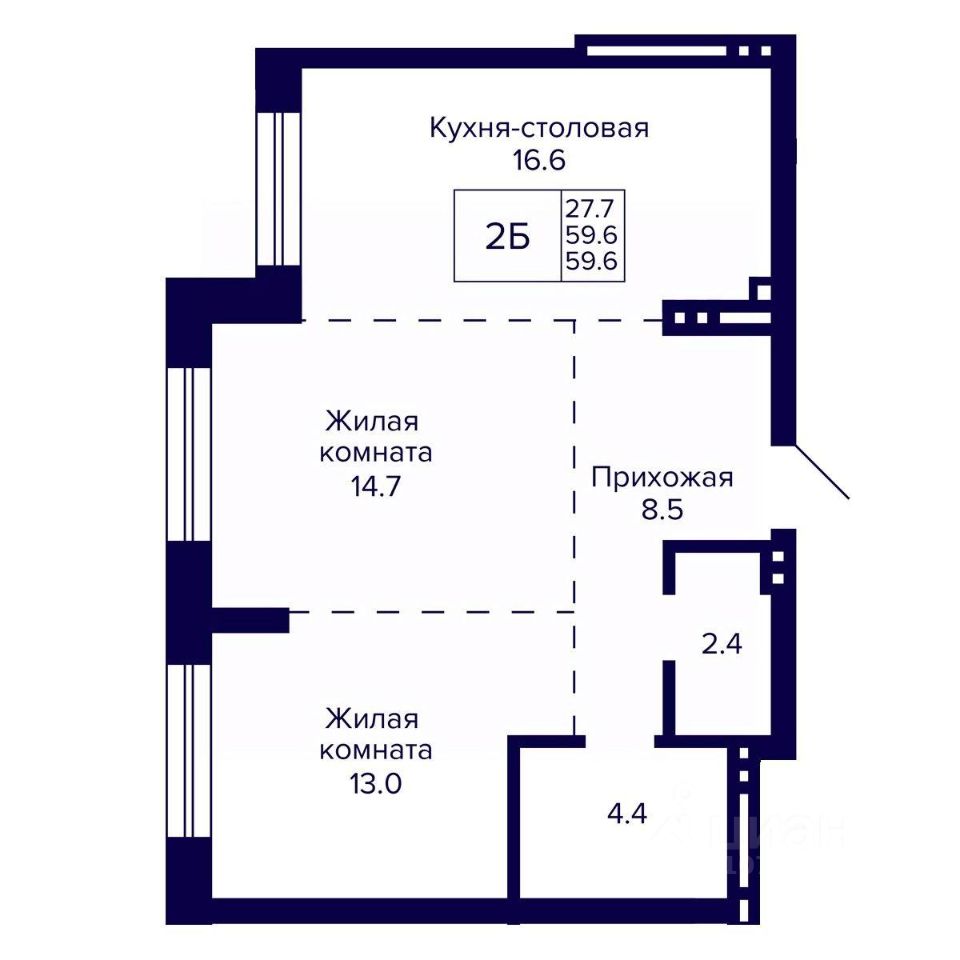 Общая площадь59,6 м²