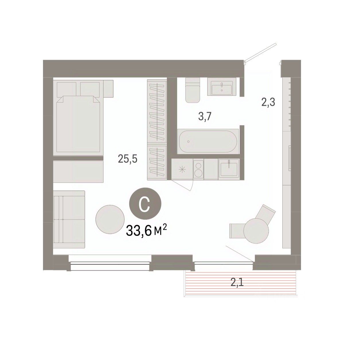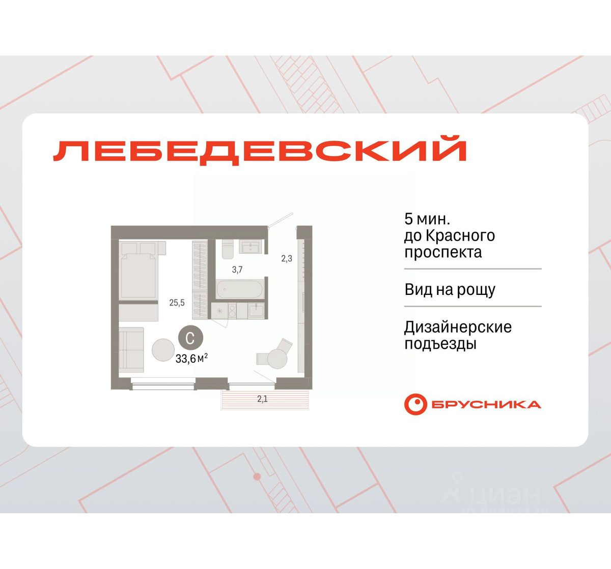 Студия в квартале "Лебедевский". Особенности планировки: балкон, предчистовая отделка.