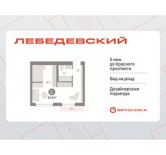 1-комн. студия от застройщика с предчистовой отделкой в ЖК "Лебедевский" на 9 этаже. Общая площадь: 33.6 кв.м. Высота потолков 2.82 м.