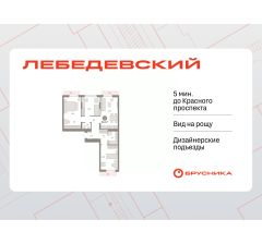 Квартира с кухней-гостиной и тремя спальнями в квартале "Лебедевский". Особенности планировки: окна на две стороны, второй санузел, гардеробная, разнесённые спальни, предчистовая отделка, балкон.