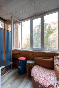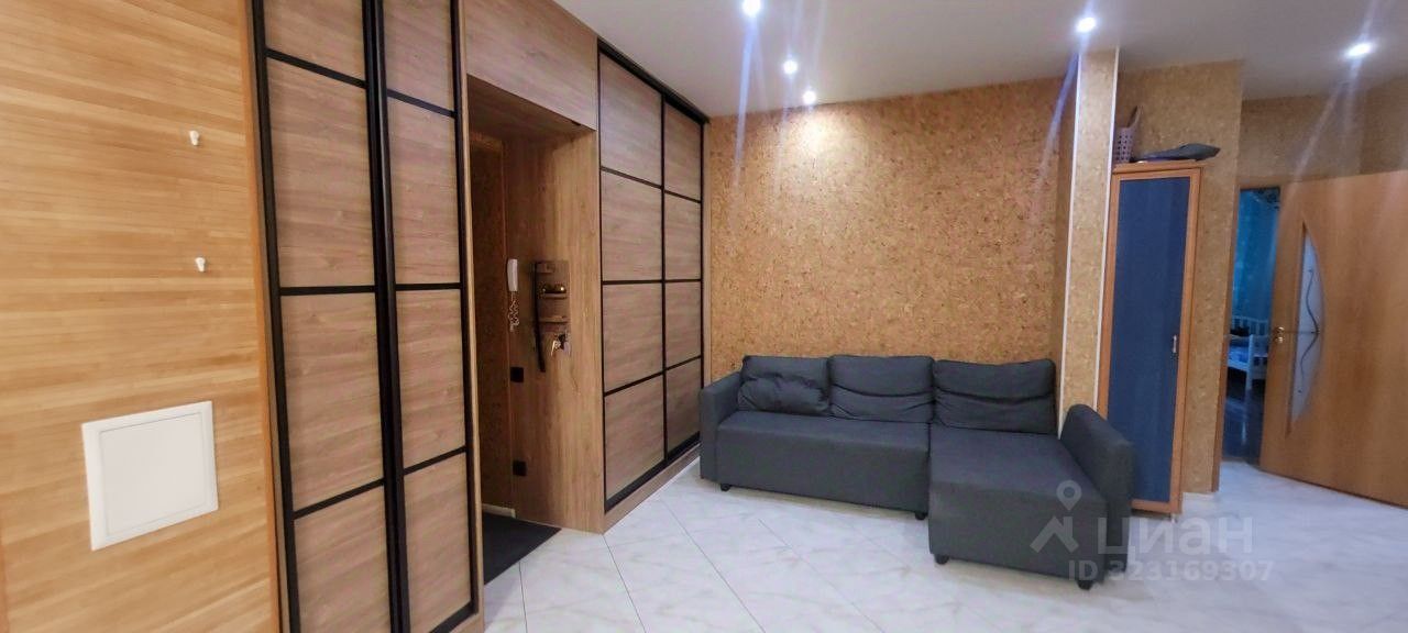В прихожей большая гардеробная (заказывали в 2022 году) и стоит диван. Окна детской комнаты выходят во двор, спальня и кухня в противоположную сторону , с хорошим видом.
