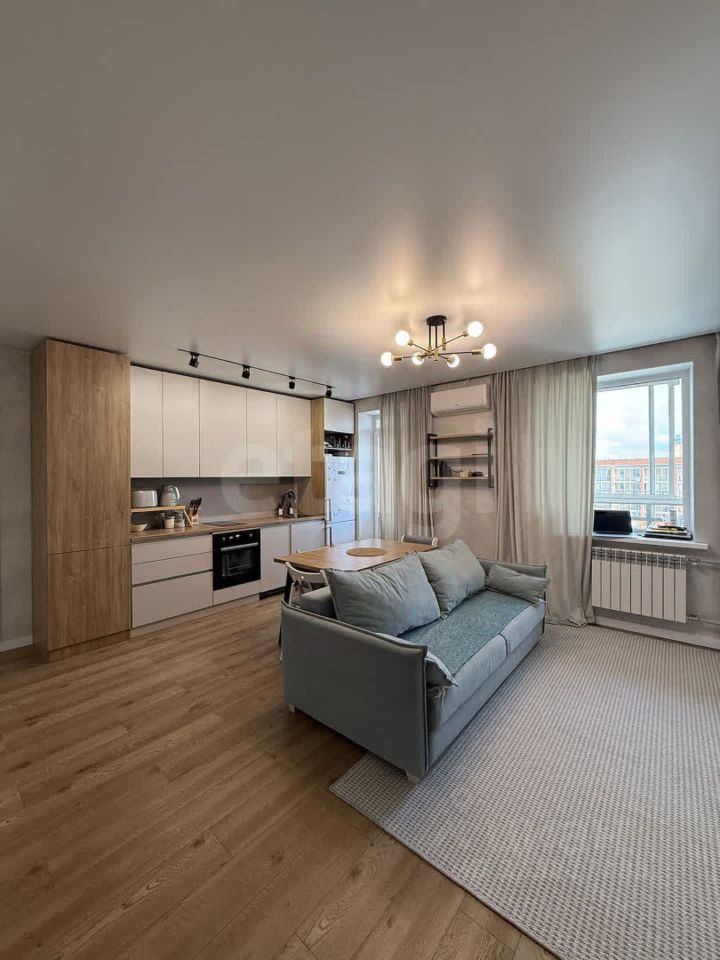 В помещении выполнен современный ремонт с практичными решениями: розетки встроены в подоконники, кварцвинил уложен единым контуром без порогов, использован теневой плинтус.
