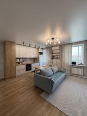 Очень теплая и уютная! Сделан современный ремонт в нейтральных тонах.