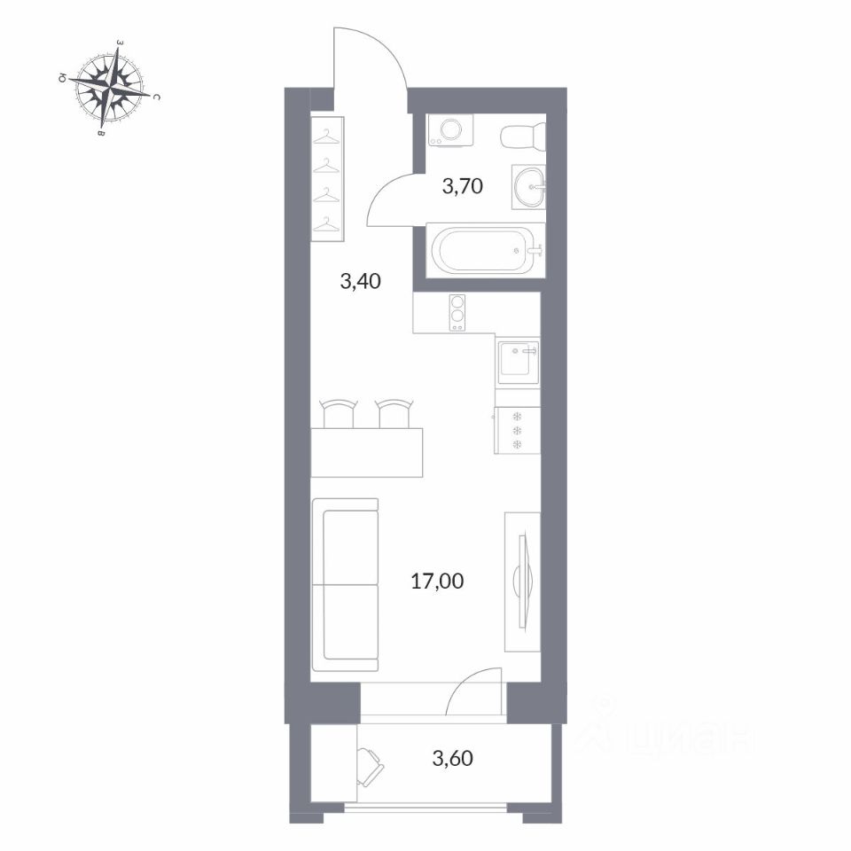 Общая площадь27,7 м²