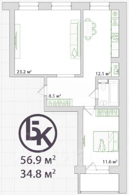 Арт. 123227447 Продается полноценная 2-комнатная квартира 60 м² с кухней-гостиной и с дизайнерским ремонтом в экологичном районе.