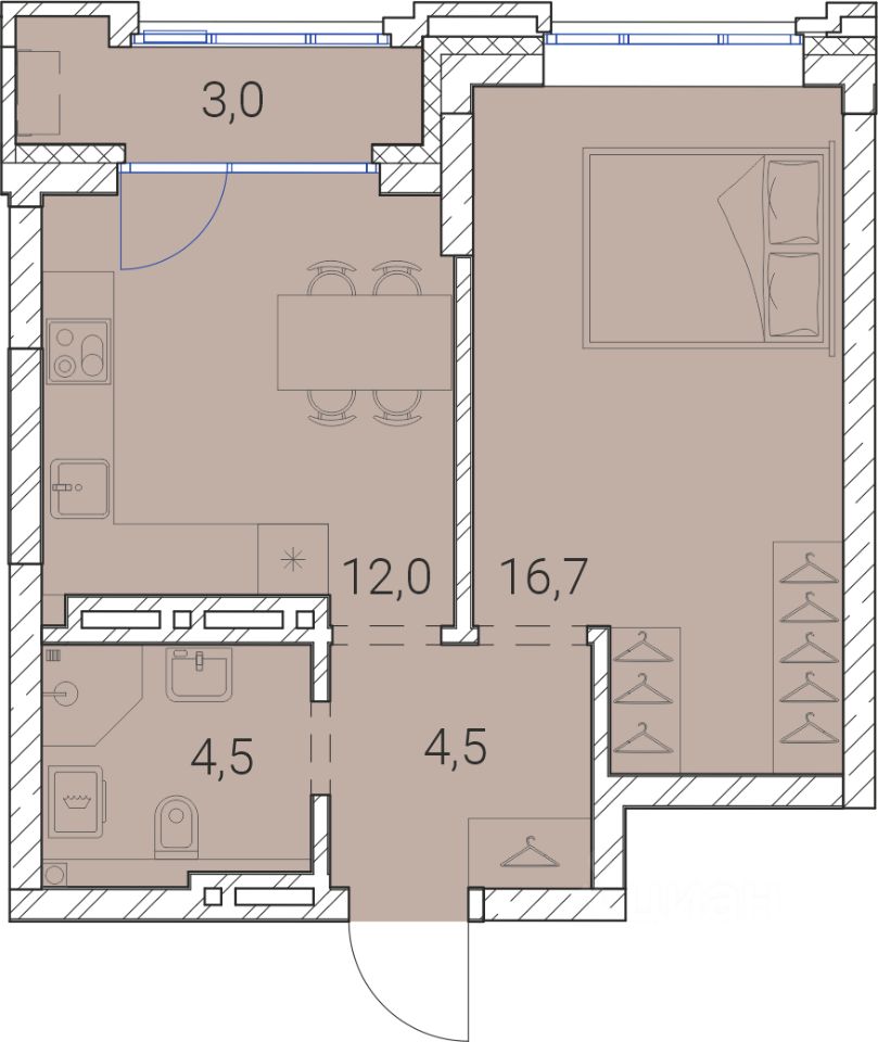 Жилая площадь16,7 м²