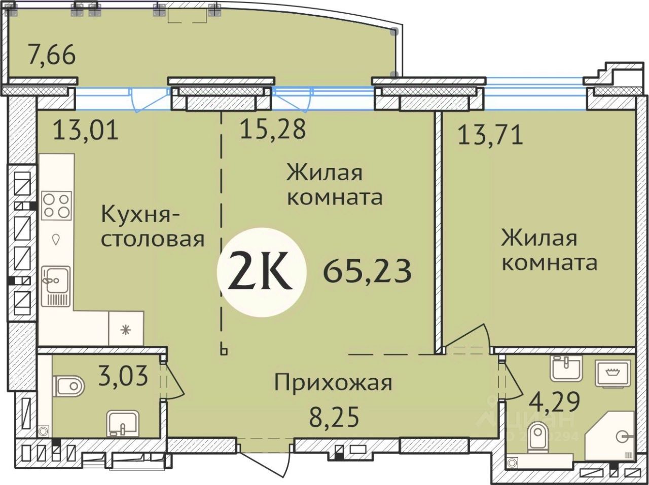 Общая площадь65,6 м²