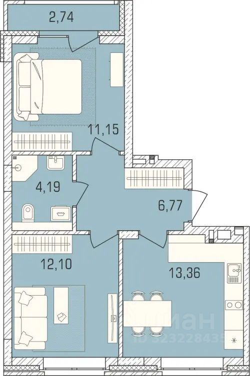 Общая площадь49,7 м²