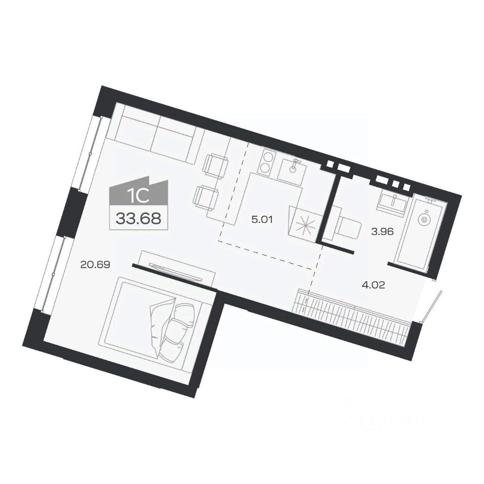 Общая площадь33,68 м²