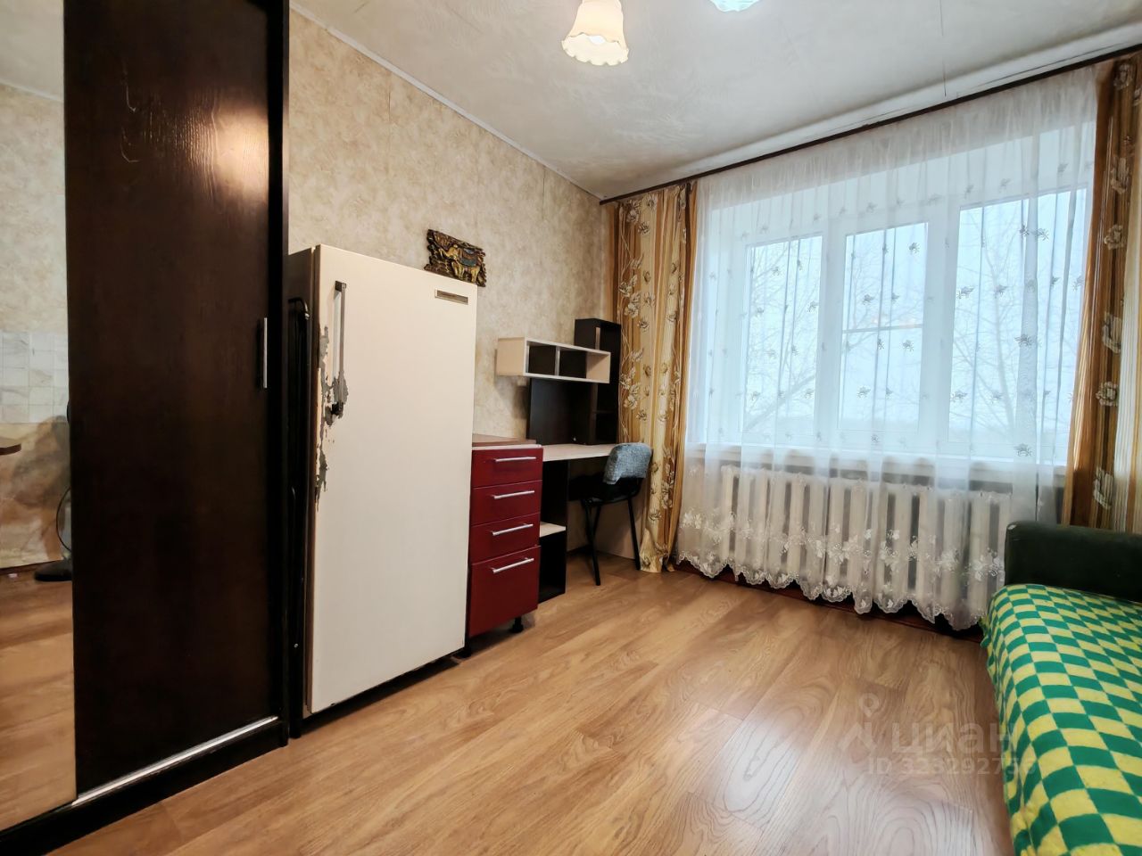 • Тёплая комната, стены общежития кирпичные, под окном большой радиатор