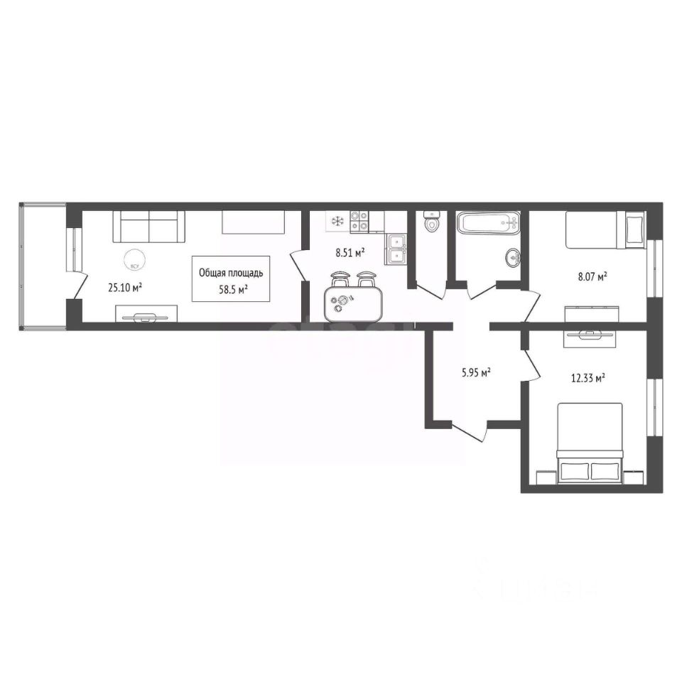 58,5 м²