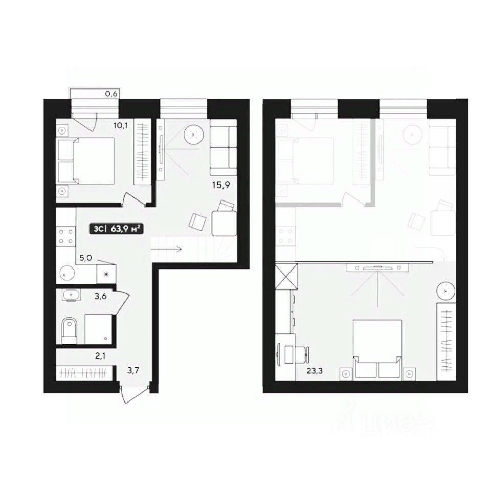 Лот 1 : Квартира - на двух этажах, общей площадью 63,90 кв.м., находящаяся на 4 и 5 этажах, расположенная по адресу: Новосибирская область, Мошковский район, п. Октябрьский, квартал Альпийский, д. 11, кв. 29. Без отделки.