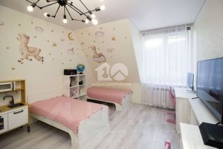 Мебель и техника современные, качественные. Каждая комната имеет свою гардеробную, есть закладные для дальнейшей установки дверей. В детской вручную изображен рисунок на стене, установлена шведская стенка. Две детские и спальня родителей грамотно расположены, удобно зонированы друг от друга. Спальню можно превратить в полноценную мастер-спальню, обеспечив прямой выход в с/у из нее.
