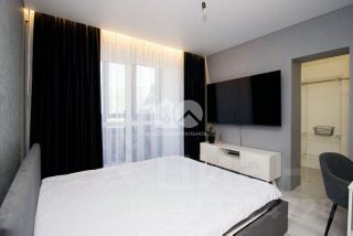 Квартира с тремя изолированными комнатами, просторной и функциональной гостиной с кухонной зоной, двумя вместительными гардеробными, двумя санузлами и балконом.