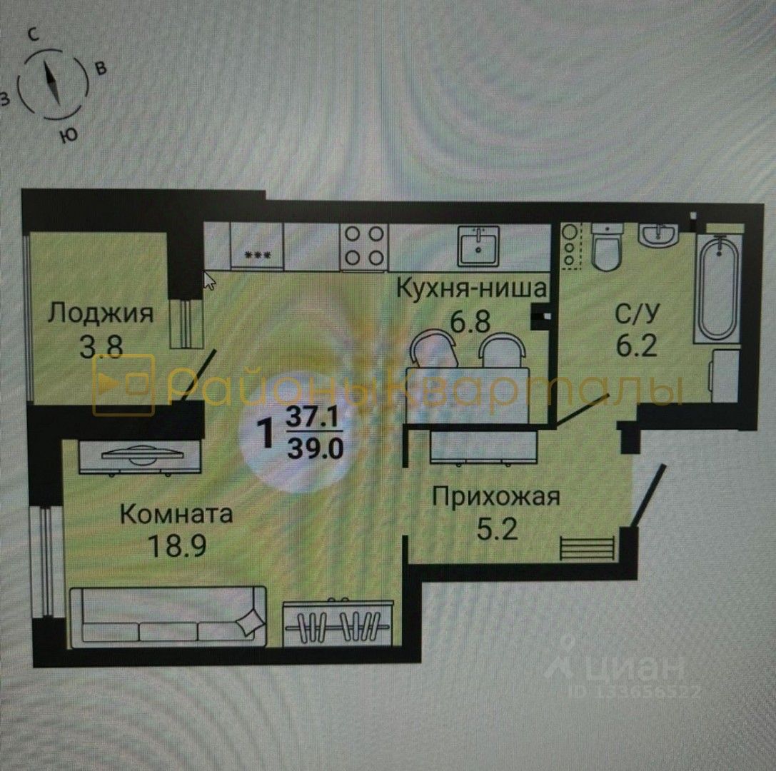 Можно переделать планировку в полноценную 1-комнатную. Прекрасный вид с 15-го этажа.